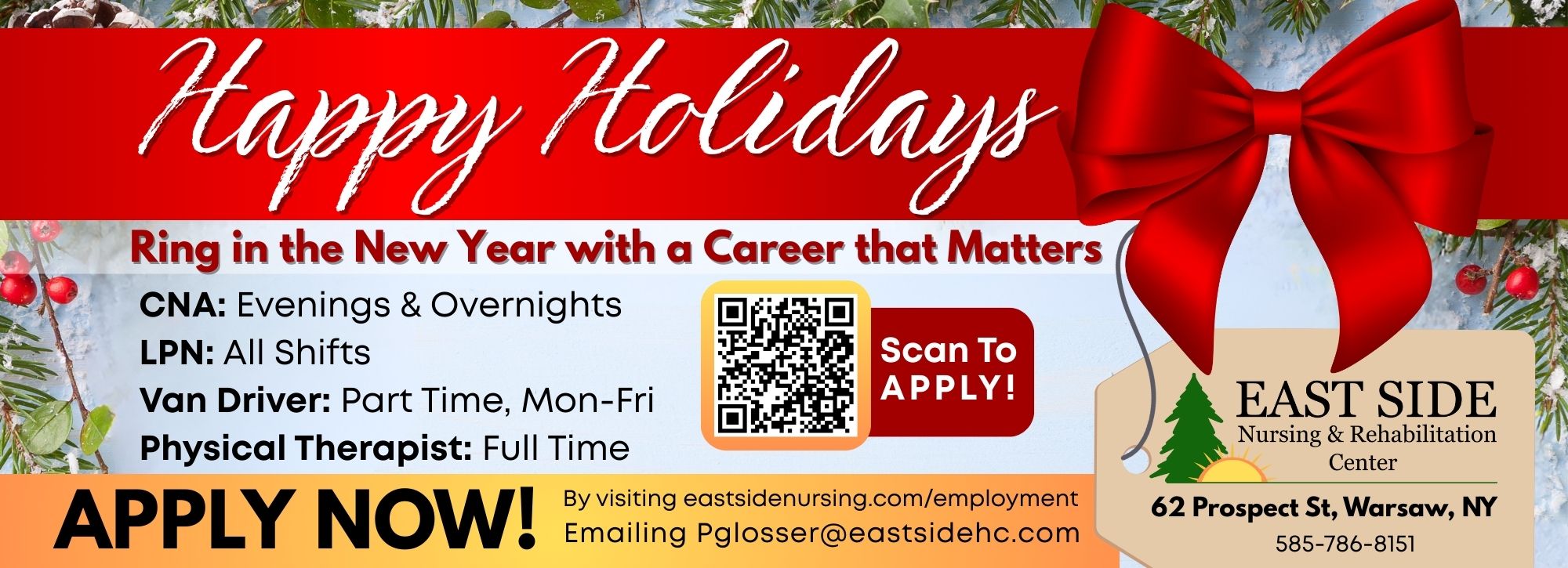 If you are interested in one of the many exciting career opportunities that East Side has to offer, we encourage you to fill out an Application for Employment. Applications may be returned by mail or in person to: