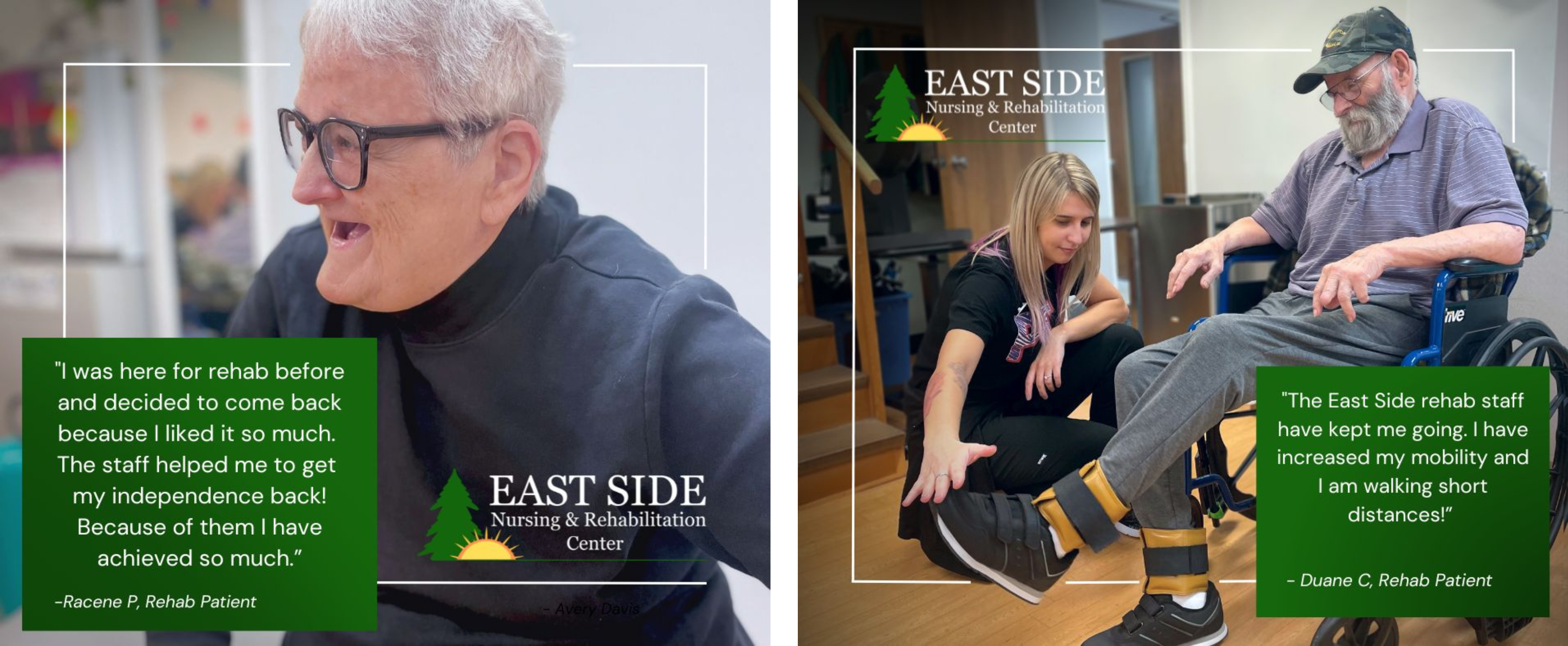 Whether you’re recovering from surgery, a sudden illness or an injury, you may find yourself needing services to advance recovery before returning home. East Side Nursing and Rehabilitation Center is committed to offering the very best of complete recovery programs.